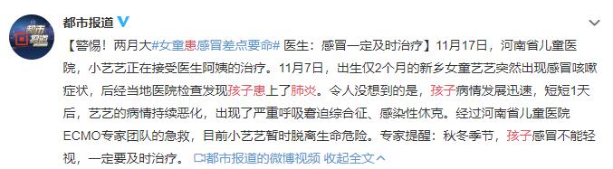 Pneumonia is one of the "primary enemies" that Eva and her parents continue to fight. There have been news reports that Xiaoyi, who was born just over two months ago, was diagnosed with pneumonia, which continued to deteriorate in just one day, and severe respiratory distress syndrome appeared, and her life was dying.