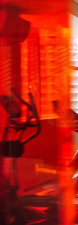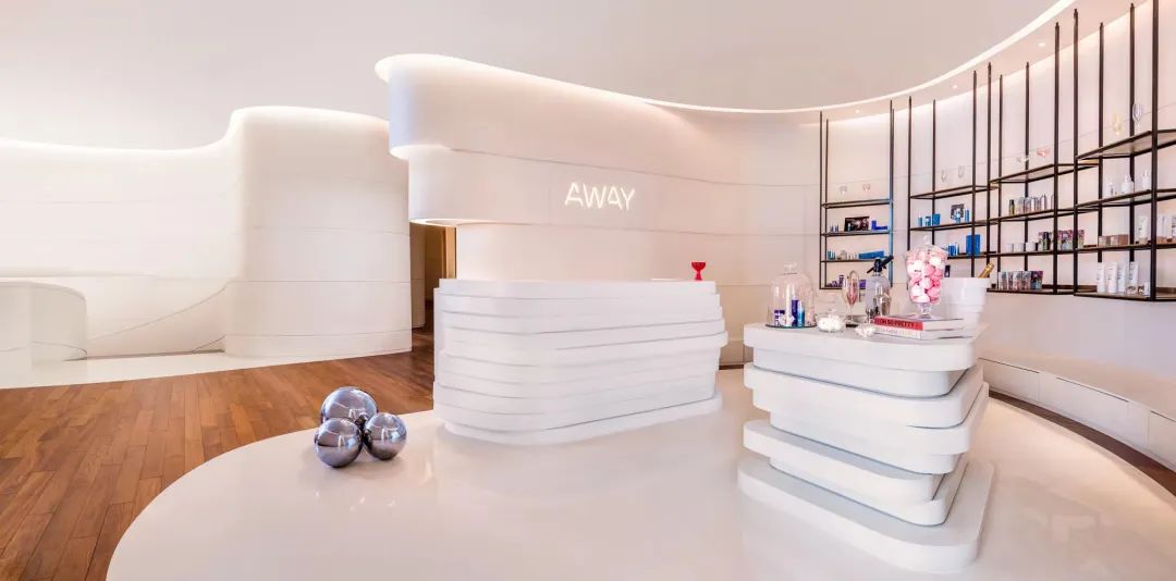Neon decorative objects distributed in layers are arranged above the foyer.