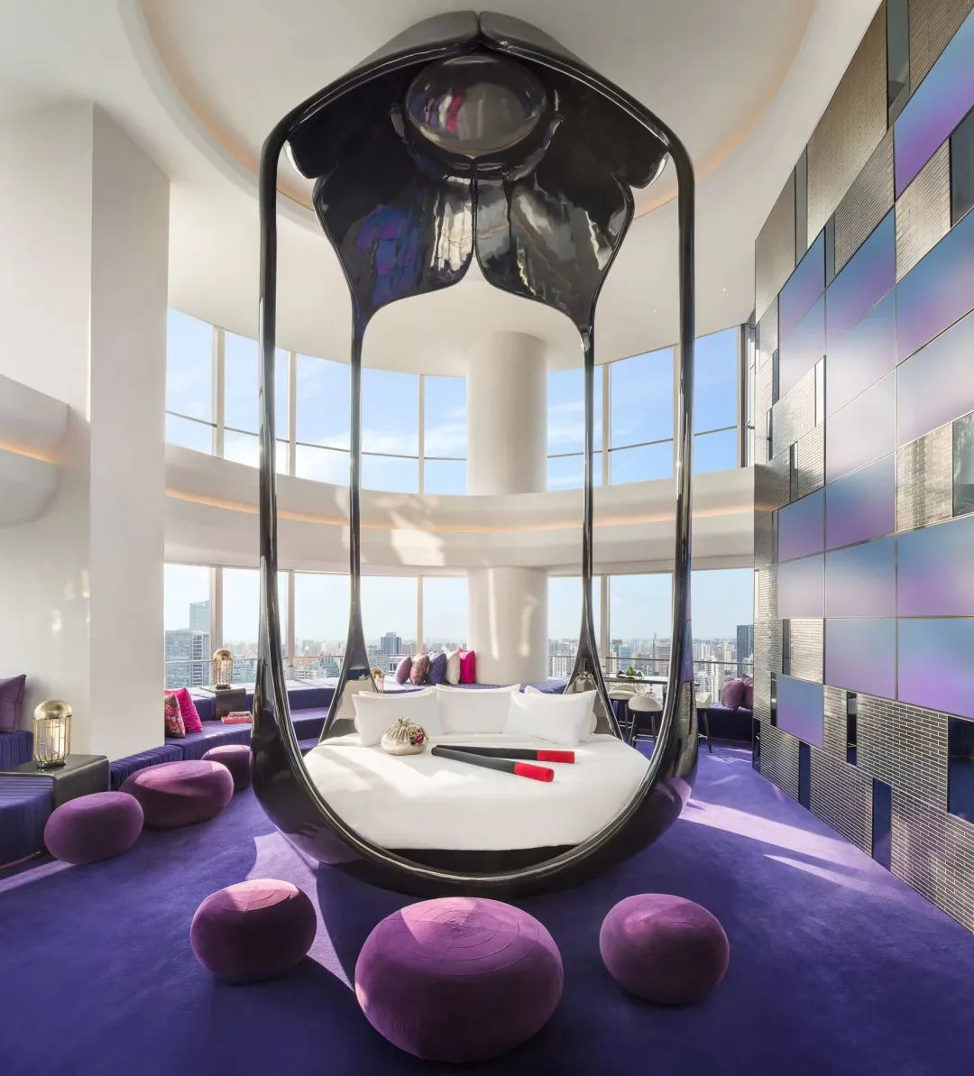 The Bund Cloud Suite allows guests to lie on a bed that looks like a birdcage hanging in mid-air.
