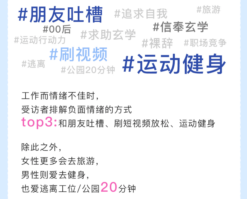 According to the report, socializing, brushing short videos and exercising are the three most common ways to decompress.