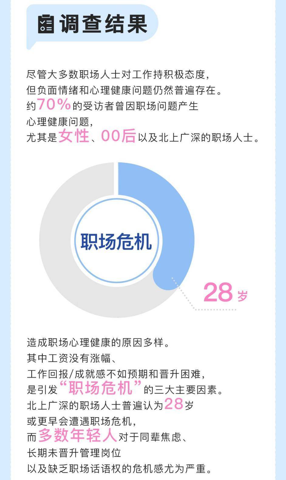 Generation Z refers to post-90s, post-90s and post-00s. They show different psychological states and coping strategies in the workplace. According to the Report on Workplace Mental Health of Generation Z in 2024, about 70% of the respondents had mental health problems due to workplace problems, especially women, post-00 generation and professionals in the north, Guangzhou and Shenzhen. Among them, the salary has not increased, the work return/sense of accomplishment is not as good as expected and the promotion difficulty has become the three main factors that trigger the "workplace crisis". This phenomenon reflects that in the process of pursuing career development, it is difficult for Z generation professionals to get rid of mental health problems.
